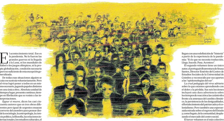 El listado de materias no es pedagógico sino central al argumento. porque el aporte de las ciencias empíricas se ha vuelto extraordinariamente visible: vacunas, tratamientos, curvas epidemiológicas, porcentajes de letalidad son temas diarios. pero los modos profundos de pensar la realidad, se sabe, son asunto de otros claustros: las ciencias sociales y las humanidades. Y si la pandemia hizo estallar la habitualidad como “una bomba”, en la metáfora de Alejandro Grimson, coordinador del programa argentina Futura, hay quienes están pensando qué hacemos con esas piezas.