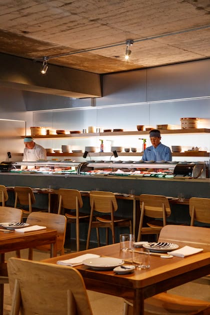 La historia de Masuda, de ascendencia nipona, siempre estuvo ligada a la cocina oriental. Comenzó casi de casualidad en la gastronomía como ayudante de camarero en el ya desaparecido restaurante Kitayama. En ese lugar conoció a Juan Matsuoka, hoy itamae de Osaka, y quedó deslumbrado con su oficio. Al tiempo, Juan abrió el restaurante Irifune y allí es donde aprendió el oficio de sushiman. “Con Roberto Costa trabajo desde el 2009, y siempre fue su sueño llevar la cocina japonesa a este nivel, no sólo desde el punto de vista de la comida, sino de la arquitectura, el ambiente”, cuenta Fabián. “Y a Leo lo conocía por su trayectoria en la cocina. Nunca había trabajado con él; hace poco fui a la casa de Leo y me mató la pulcritud, el orden… más japonés imposible”, dice Fabián entre risas.