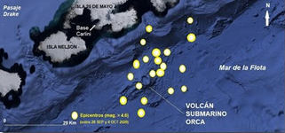 Desde fines de agosto hasta comienzos de octubre de este año (2020) se registró una inusual e importante actividad sísmica en las cercanías de la Base Carlini (ex-Jubany), ubicada en la isla 25 de Mayo en la Antártida Argentina. Más de una docena de sismos de magnitudes moderadas a fuertes, alrededor de 5 en la escala Richter y unas 70 réplicas de moderada intensidad, se registraron en la Estación Sismográfica JUBA, ubicada en dicha Base. El enjambre de los epicentros se ubicó alrededor de un aparato volcánico submarino, el cual culmina en un cráter, también submarino, denominado "Volcán Submarino Orca", emplazado en el fondo del Mar de la Flota, a unos 15 km al SSO de las instalaciones de la Base. La actividad sísmica y las anomalías de temperatura junto a la presencia de microorganismos termofílicos detectados en el agua de mar alrededor de este volcán submarino, indican que el mismo se halla activo. Más información y detalles, haga clic a continuación: www.marambio.aq/volcansubmarino.html | |