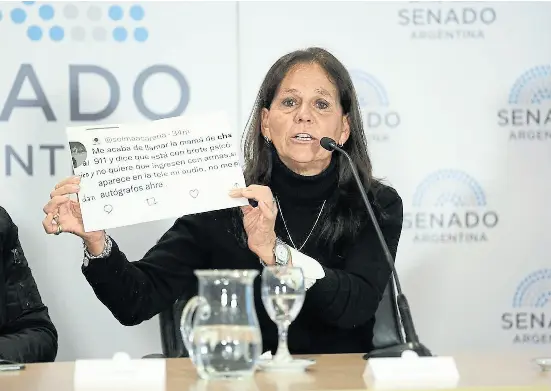 “¿Por qué nos tenemos que avergonzar de tener hijos con la enfermedad de la adicción? Tiene el síntoma del consumo, pero detrás hay una depresión. La ley no me ayudó. Tengo facilidades económicas que me permitieron pagar internaciones carísimas, pero esa no es la realidad del común de las madres. ¿En qué cabeza entra que una persona que consumió marihuana, paco o cocaína va a ir libremente a intery narse?”, dijo en referencia al artículo 20 de la ley de salud mental actual, el más cuestionado por familiares y especialistas que abogan por un cambio en la legislación, que determina cuáles son los criterios para que se pueda avanzar con la internación contra la voluntad de los pacientes.