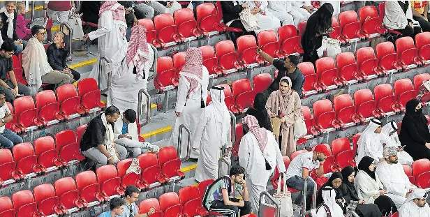 El resto del estadio, sin embargo, empezó a vaciarse lentamente. Después del entretiempo, miles de qataríes no regresaron a sus asientos, y a medida que el segundo tiempo llegaba a su inevitable conclusión –un Ecuador cómodo y contento de poder funcionar en modo “bajo consumo”– más y más los siguieron, y en los sectores del estadio donde no predominaban los sudamericanos ya eran más las plateas vacías que las ocupadas.
