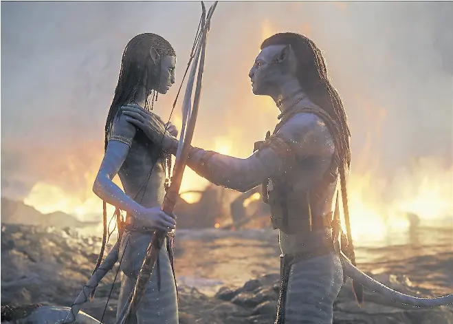 Avatar: El camino del agua, cargada de simbolismo religioso occidental y oriental, bucea por las obsesiones de un cineasta cuya carrera está atravesada por la relación entre los humanos y las máquinas. Él mismo reconoce que esta franquicia (que, advierte, puede tener cinco secuelas más) es su intento de replicar lo que hizo Tolkien con El señor de los anillos en la literatura. Puede resultar paradójico que para representar este relato ambientalista de seres que parecen haditas que viven en armonía con la naturaleza se haya volcado casi por completo a las imágenes generadas por computadora, incluso más que en la anterior. No hay casi nada natural en las imágenes generadas con ceros y unos que ilustran las más de tres horas de película.
