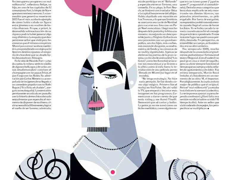Es complejo desentrañar el modo en que Ricardo Fort se instaló en la memoria colectiva local. Descifrar el proceso que lo llevó a entrar a la categoría de emoji, de GIF animado, de estampita pop. “A la gente, por lo general, no le gustan los millonarios; pero a papi lo amaban. Yo creo que era porque era un mal millonario”, reflexiona Felipe, su hijo, en uno de los capítulos de El comandante Fort, la biopic de Star+ que se estrenó esta semana. La conmoción que generó su muerte en 2013 fue el más acabado ejemplo de cómo había calado su figura entre jóvenes o en madres de barrios diversos. Es que, a priori, la desmedida sobreactuación de su riqueza podría haber generar algo muy distinto a la empatía que despertó este señor que vivió para las cámaras que él mismo compró en Miami para armar su show mediático, emprendiendo un viaje que lo llevó en destino opuesto al emporio de chocolate que su abuelo había levantado en Almagro.
