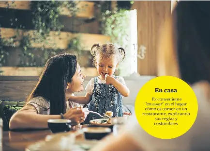 ◗ También es buena idea incluirlos en los planes, conversar con ellos a dónde vamos, qué esperar, explicarles como funciona un restaurante (por ejemplo que el camarero toma la orden, la lleva a la cocina, etcétera). Incitarlos a que sean ellos los que soliciten lo que van a comer; que se comuniquen con quien los atiende, que aprendan a pedir.