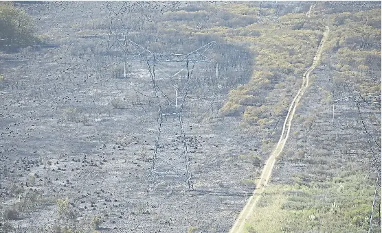 Fuera de las calles de pavimento que conectan los barrios cerrados, por los caminos de tierra circulaban los camiones de la empresa Rowing, subcontratista de la distribuidora Edenor, con los nuevos postes de luz de 14 metros, para reemplazar a los antiguos de 11 que quedaron partidos y ennegrecidos por el avance del fuego.