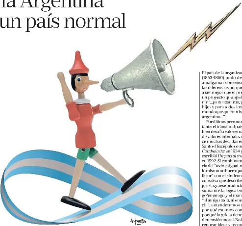 Otro vaso comunicante de la cultura posmoderna con el populismo es el sacrificio del futuro en el altar del presente. El cortoplacismo en versión populista es la “eternidad del instante” en compás posmoderno. El problema es cuando el presente se torna insoportable porque la inflación se desborda o la inseguridad y el desorden dominan la calle. Por idiosincrasia, los argentinos tendemos a ser deterministas respecto del futuro. Cuando el presente es intolerable, evocamos un pasado que ya fue y asumimos un futuro de fracaso. Lo que se traduce en un escepticismo casi radicalizado, que descarta el presupuesto del “país normal”. Como si fuese imposible imaginarlo en el presente alocado en que vivimos. Como si estuviésemos condenados a vivir en una Argentina decadente y anormal. Muchos se hacen eco de este destino escrito en piedra cuando deducen de los entuertos del oficialismo la estrategia deliberada de entregar una bomba al que viene, especulando que los costos de la explosión y del consiguiente ajuste harán que la sociedad, otra vez defraudada, vuelva a optar por alguna otra de las variantes que ofrece el populismo en su versión posmoderna. Un eterno retorno ya guionado que se puede llevar puesto el sistema. El determinismo idiosincrásico vernáculo es otro gran obstáculo en el camino a la Argentina normal. Pero, a no equivocarse, el futuro argentino está abierto a distintas posibilidades, y el otro gran desafío en el camino al país normal es reencontrar a la Argentina con un proyecto de porvenir que desate las ataduras del duro presente. país de la organización nacional (1853-1860) pudo debatir ideas y amalgamar consensos básicos en las diferencias porque el futuro iba a ser mejor que el presente. Había un proyecto que apelaba al porvenir “...para nosotros, para nuestros hijos y para todos los hombres del mundo que quieran habitar el suelo argentino…”.
