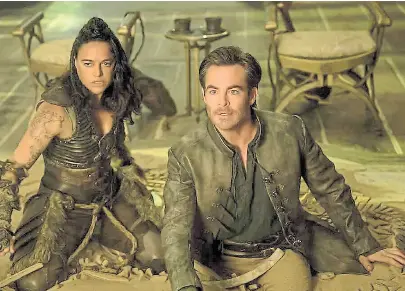 La historia es clásica en el sentido de que recurre, como buena parte del cine actual de superhéroes, a cada una de las funciones narrativas que se encuentran en el cuento popular desde la edad media: el héroe que pierde un objeto mágico, el antagonista que se apodera de tal objeto, la búsqueda de ayudantes para la gesta heroica, el destinatario que recibirá el beneficio de tal acción, etc. Con nombres propios, la historia es así: Edgin (Chris Pine) es un vividor de buen corazón que, tras el asesinato de su esposa, debe criar a su hija Kira (Chloe Coleman), a quien eventualmente pierde a manos del villano Forge (Hugh Grant, canalizando a su personaje de Paddington 2). Para revivir a su mujer y recuperar a su hija debe encontrar la Tabla de la Resurrección, pero antes de eso también el Casco de la Disyunción. Para tamañas tareas cuenta con la ayuda de la bárbara (como gentilicio y como calificativo) Holga (Michelle Rodriguez) y de un grupo variopinto de pícaros y hechiceros a los que recluta a medida que avanza su derrotero hasta llegar a la gran batalla final contra la maga roja Sofina (Daisy Head), un dragón con sobrepeso y otras fuerzas del mal.