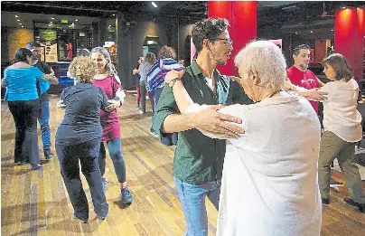 Pedro, de 77, vive en Boedo y viene a bailar tango con su hija Karina, que es psicóloga. Hace dos años empezó con temblores. Fue gerente de personal de una empresa, pero le daban la medalla al mejor compañero. “Un gerente muy especial”, expresa Karina, que tiene una sonrisa enorme e inmensa todo el tiempo mientras baila con su padre y con otras personas, porque algunos de los ejercicios suponen cambiar de pareja. “Nunca pensé que iba a aprender algo nuevo”, se asombra Pedro.