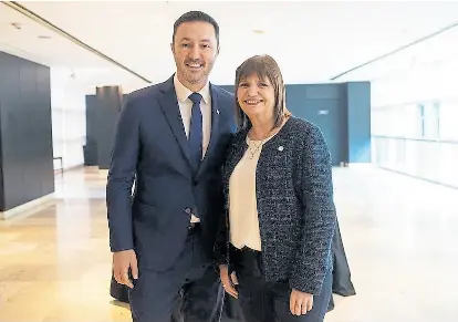 Petri y Patricia Bullrich, ayer, en su primera foto juntos como precandidatos
