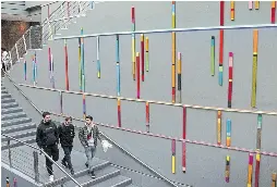 El tercer sistema que conforma la obra está conformado por el juego de líneas oblicuas móviles que generan los cambios de la luz natural. De esta manera, un “ritmo secuencial matemático” va variando a medida que transcurre el día o que se suben las escaleras, en cuatro actos. “El tejido termina siendo un texto no legible, hilvanado a un pensamiento”, dice Vitali a la nacion desde Rosario, a donde volvió después de haber montado la instalación en Buenos Aires durante una semana.