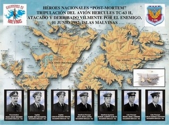 El 1 de junio de 1982, en plena batalla de Malvinas, durante una misión de exploración y reconocimiento de los denominados "Vuelos Locos" es derribado sobre el mar el avión Hércules C-130 – matricula TC 63 – indicativo "TIZA", al ser alcanzado por misiles entre los motores del lado derecho, por una sección de aviones británicos Sea Harrier (PAC) y cuando aún se mantenía en vuelo, fue atacado con cañones sobre sus áreas de comando y se estrelló en el mar. En homenaje a su tripulación el día 1° de junio de 2017 al cumplirse 35 años del derribo de este avión se inauguró al ingreso a la I Brigada Aérea de El Palomar un monumento alusivo. En otra ceremonia conmemorativa para recordar a los tripulantes de este avión derribado, el entonces jefe del Escuadrón I Hércules C-130, de la I Brigada Aérea, Vicecomodoro Sebastián Coria, pronunció palabras alusivas, que permanecerán el el recuerdo, donde narra detalles de la operación y reconoce, mencionándolos a estos hombres que dieron su vida por la Patria. Más detalles de las acciones, del monumento, imágenes y video explicativo, haga clic a continuación: www.marambio.aq/tc63derribo.html | |