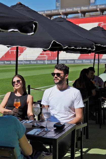 Belén y Nicolás disfrutan un almuerzo en Banda, el restaurante que funciona dentro del club River PlateEn un costado, una barra sirve cócteles de autor diseñados por el bartender Diego Zelaya. “Esperamos públicos muy distintos, desde familias a turistas que pasean por la ciudad o ejecutivos en una reunión de negocios. Por eso elegimos una carta más larga”, dicen.