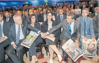 ¿Hubiera sido buena la foto de ambos? “No opino de lo que hacen los demás”, dijo Massa a la nacion, mientras saludaba a la marea de dirigentes comunitarios que se acercaron a saludarlo. Dirigentes de Juntos por el Cambio como el jefe de gobierno porteño Horacio rodríguez Larreta, sindicalistas como Armando Cavalieri y rodolfo Daer, empresarios como Daniel Funes de rioja, e intendentes de distinto signo político como Diego Valenzuela (Pro) Gustavo Posse (UCr) y Fernando Gray (Unión por la Patria) se unieron en el final, con sus manos enarbolando las fotos de los secuestrados y un texto común: “Libérenlos. Estoy con Israel”