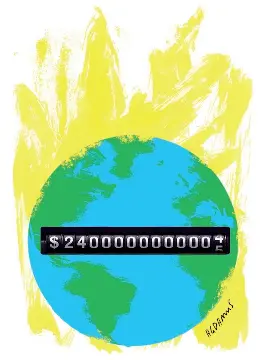2,4 billones. Se dice rápido. Es la astronómica cifra en dólares que se necesita para hacer frente al cambio climático. Y no una vez: es la cifra que habría que gastar cada año para evitar los peores efectos de los cambios que hemos causado en la atmósfera. Nadie sabe a ciencia cierta quién o cómo se podrá disponer de tal cifra. Pero más nos vale conseguir la solución.