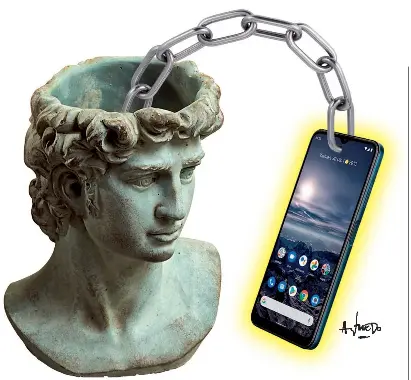 Actualmente, en cambio, el hombre vive sumergido en un torbellino de solicitaciones cognitivas y no le alcanza el tiempo para satisfacer la necesidad obsesiva de ocupar su tiempo libre. No se autoriza ningún paréntesis de reposo, a riesgo de poner en peligro su equilibrio psíquico por su prolongada exposición a los medios electrónicos. Desde hace varios años, en el mundo prospera una epidemia menos letal que el Covid-19, pero igualmente peligrosa para la salud mental: aunque no se trata de una patología oficialmente reconocida por la medicina, las publicaciones académicas utilizan el término “nomofobia” para describir el miedo irracional que experimenta un ser humano cuando no puede usar su smartphone. Se trata de una adicción fuerte –tan peligrosa como una droga– que constriñe a los seres humanos a dedicar 4 horas y 48 minutos por día a consultar su teléfono. En Estados Unidos, esa dependencia irresistible dio origen al neologismo fomo (fear of missing out), que designa el miedo de perder el menor detalle del enorme caudal de microacontecimientos que circulan por los reels de las redes sociales. Cualquier persona –por voraz, rápida e inteligente que sea– necesitaría miles de años para asimilar el volumen sideral de información y data que circula por internet, estimado en 120 zettabytes anuales, según Statista.