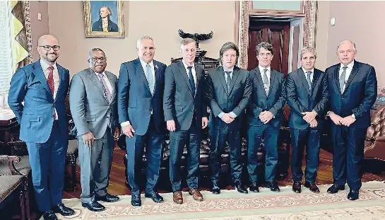 Milei posa junto a Jake sullivan (a su izquierda en la foto) tras el encuentro en la Casa Blanca