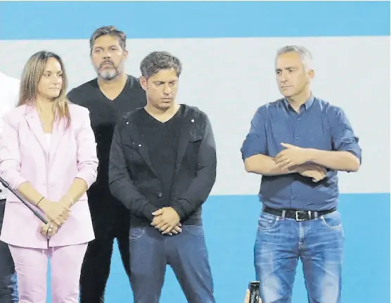 Axel Kicillof, anoche, en el búnker del oficialismo, junto a Malena Galmarini, Carlos Bianco y Andrés “Cuervo” Larroque