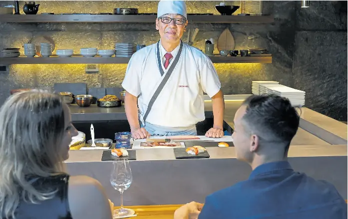 El itamae Takeshi Shimada en acción, hoy se luce detrás de la barra de Shimada Omakase
