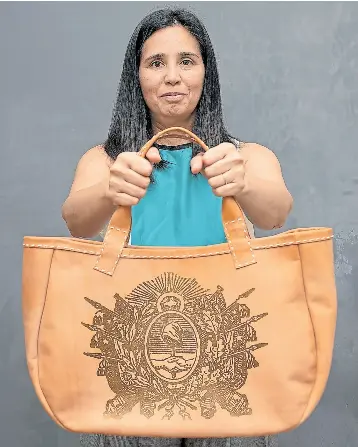El escudo que identifica a los bolsos corresponde a la Confederación de Provincias Argentinas que existió entre 1831 y 1861, durante el gobierno de Juan Manuel de Rosas. De allí la cantidad de banderas plasmadas en su diseño. “Me gustó este más que otros porque los laureles son muy etéreos”, apunta Vieytes, que trabaja los productos a mano. En cuero de vaqueta, que con el tiempo muta su color original a un óxido muy particular, y en lona cruda, Paula estampa en chablon (bastidor) el bolso-escudo que aman los turistas. Desde el Hotel Faena al Museo Malba, pasando por el Museo Draghi de San Antonio de Areco y hoteles de Bariloche, los accesorios recorren de punta a punta la Argentina cargando en sus tiras buena parte de su historia.