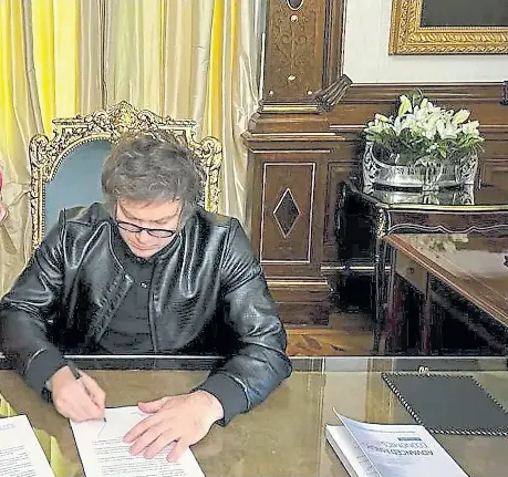 Fue tras eso que llegó el posteo de la Oficina del Presidente junto a la carta y la foto, donde se ve a Milei con su tradicional campera de cuero y lentes firmar la misiva, bajo la mirada de su hermana, parada a su lado, vestida de fucsia y con el cabello recogido.