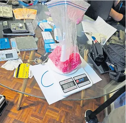 Los investigadores descubrieron que en el piso 17 de un edificio situado en el barrio porteño de Villa Crespo la banda habían instalado un laboratorio producía tusi, droga también conocida como cocaína rosa. Los narcos tenían una variante de tusi que también elaboraban en “la cocina” del departamento que alquilaban por 500 dólares mensuales en Villa Crespo y que no pasó desapercibida por el color de la droga: lila. El tusi, cuyo nombre proviene de la deformación de la pronunciación en inglés de la sigla 2C-B es una mezcla de varias sustancias como la ketamina y MDMA. Tiene un alto poder adictivo y produce efectos alucinógenos.