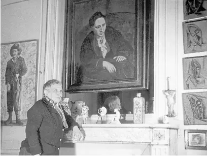 Stein, en su departamento parisino, frente al retrato que le hizo Picasso en 1906