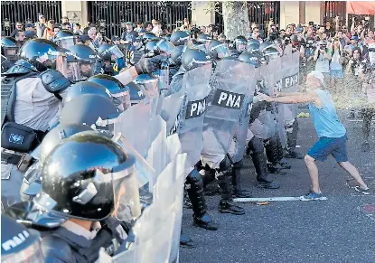 Las agrupaciones de izquierda que manifestaban frente al Congreso (el Polo Obrero, el PTS, el MST, o Libres del Sur, entre otras) forcejearon y fueron repelidas por los efectivos, que utilizaron gas pimienta y desplegaron carros hidrantes luego de que los militantes intentaran cortar las calles, algo que no habían buscado durante las primeras horas de debate.