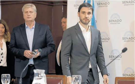 El chubutense Ignacio Torres y el pampeano Sergio Ziliotto, ayer, en el Senado