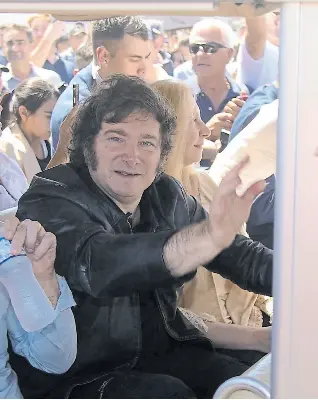SAN NICOLÁS.– Enfundado en su clásica campera de cuero negro y acompañado por el diputado José Luis Espert, el presidente Javier Milei esperó entre risas y selfies el momento de retomar su discurso, interrumpido por un corte de luz que volvió más celoso a su personal de custodia, que intentó evitar ingresos a la carpa del Centro de Agronegocios, poblada por empresarios del sector agropecuario que escuchaban el mensaje del jefe del Estado en su visita a Expoagro 2024. Afuera, el amontonamiento era la regla para una multitud de visitantes que pugnaban por un lugar cerca del vallado desde el que saludó Milei antes de subir a un carrito eléctrico para llegar al puesto de la Secretaría de Bioeconomía.