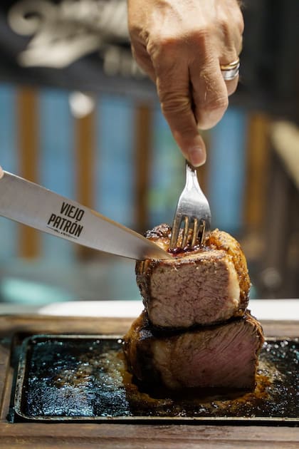 Entre los cortes se destacan el asado especial del centro, el costillar braseado y la selección del Sommelier, que incluye cortes como lomo, entraña y cuadril.La propuesta gastronómica de Viejo Patrón tiene como eje central a las carnes, aunque también trabajan otros platos. Se destacan el asado especial del centro, el costillar braseado y uno particular en la carta: la Selección del Sommelier, que incluye cortes como lomo, entraña y cuadril. También hay pastas caseras y minutas, como milanesa de bife de chorizo napolitana, salmón cítrico y el clásico revuelto gramajo. El lugar tiene dos pisos, una terraza y decks en la calle.