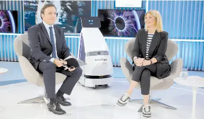 El secretario general de Redacción José Del Rio, y la CEO de accenture, Sofía vago, abrieron la jornada interactuando con los participantes no humanos