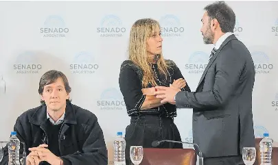 El jefe del bloque oficialista del Senado, Ezequiel Atauche, discute con Juliana Di Tullio