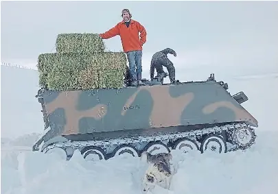 En vehículos militares con orugas se transporta alfalfa para auxiliar a ovejas ejército