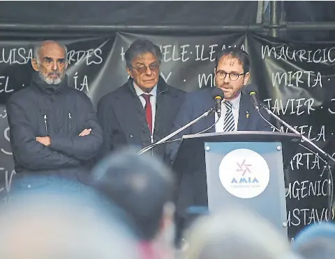 Por otro lado, apuntó contra los legisladores nacionales, a los que les dijo que “haber sufrido dos atentados terroristas no parece ser suficiente para que entiendan que al terrorismo no se lo puede prevenir, investigar y juzgar con las mismas herramientas que a un delito común”. “¿Cuántas décadas más tienen que pasar? ¡Hagan su trabajo!”, les reclamó. Entre la multitud estaban los diputados nacionales Maximiliano Ferraro y Juan Manuel López (ambos de la CC-ARI), José Glinsky y Leandro Santoro (Unión por la Patria); Hernán Lombardi, Silvana Giúdici y Fernando Iglesias (Pro), además del jefe de gobierno porteño Jorge Macri, embajadores y delegaciones extranjeras, delante y en medio de una multitud que llegaba, por Pasteur, a cubrir tres cuadras, hasta su intersección con Lavalle.