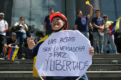 “Venezuela tiene un nuevo presidente y es Edmundo González [...] Si nosotros lo hicimos porque no publicas las actas ellos”, insiste desde lo alto del transporte Machado, que el lunes afirmó que tenían más del 70% de las actas que evidenciarían el la victoria opositora, visibles en una página web que el régimen chavista bloqueó. Testigos de las mesas electorales alcanzan desde adentro del maremoto de gente las actas, que parecen ser un ticket, para evidenciar los votos que ellos mismos resguardaron el domingo electoral.