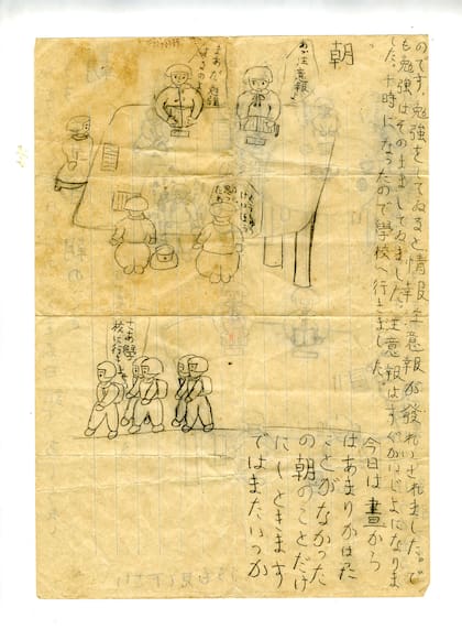 Chikako Okubo, cursaba quinto grado en la escuela de Nakajima en el momento del bombardeo. Nunca regresó. Esta es una de las cartas que escribió a su padre antes del horror en Hiroshima...Colección del Museo Memorial de la Paz de Hiroshima