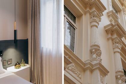 Detalle de una habitación del Grand Brizo Bel Air sobre Arenales, con la fachada clásica fabulosamente restaurada.@miserereok“Se hizo un exhaustivo trabajo de restauración en el edificio, originalmente diseñado por los arquitectos Squirru, Croce y Mujica y construido en 1927 con un marcado estilo barroco español”, nos cuenta Claudia Álvarez Argüelles, presidenta del grupo hotelero que fundaron sus padres hace 70 años y que ella lidera.