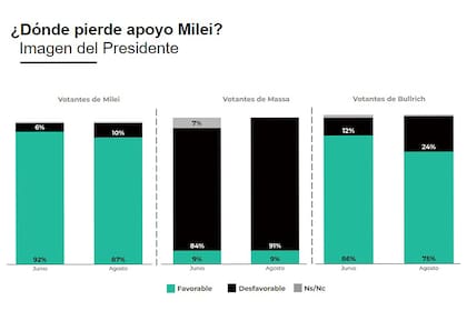 La reaparición de Javier Milei como líder de una fuerza política coincidió en el plano temporal con un hecho verificado en la opinión pública: el Presidente está perdiendo apoyo de sectores que lo votaron para llegar a la Casa Rosada, en un proceso que se inició hace cuatro meses y que se agudizó en septiembre. La caída de la imagen del mandatario se convirtió en una tendencia que, en forma evidente, inquieta al propio Milei.