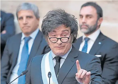 Javier Milei, en el Congreso; atrás, el ministro Caputo y el senador Atauche