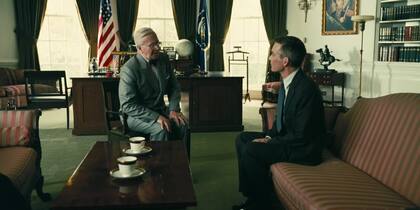 Escena de la película en la que Truman felicita a OppenheimerEl presidente que amaba la historia