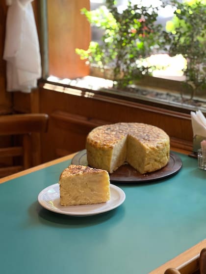“Hacemos todo en el momento, y sale bien calentita. Huevo, cebolla, sal y pimienta. Si el cliente quiere, a punto o babé. Y muchos la piden con chorizo español”, detalla Hernán Villalba, orgulloso cocinero a cargo. Tiene de qué jactarse: su plato es tan exitoso que marcha unas 15 tortillas por día. Los más conocedores se sientan en la barra, piden una porción y una copa de vino y le suman aceite de oliva y pimienta. Los turistas suelen optar por la versión individual en una mesa.