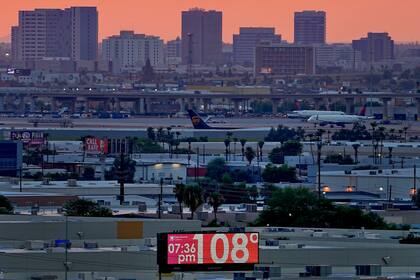 Un cartel muestra la temperatura no oficial de 108 grados Fahrenheit (42,2 grados Celsius) frente al Aeropuerto Internacional Sky Harbor, el 12 de julio de 2023, en PhoenixMatt York - APCuando mencionan las medidas que logran la mayor diferencia, éstas coinciden con las políticas y agencias que Trump ha dicho que atacará: la emblemática ley climática del presidente Joe Biden, que financia medidas energéticas para combatir el cambio climático, además de las normas emitidas por la Agencia de Protección Ambiental (EPA, por sus siglas en inglés) para limitar las fugas del poderoso contaminante climático metano, la contaminación producida por las centrales eléctricas alimentadas con carbón y las emisiones de automóviles y camiones.