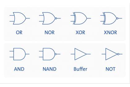 Los símbolos con los que se representan las puertas lógicas; la concepción de "puerta lógica" aparece por primera vez en la tesis de ShannonUno de los operadores más potentes del álgebra booleana es el que hoy se conoce como XOR. El resultado de combinar dos proposiciones mediante XOR es verdadero solo si una de las dos es verdadera. Si ambas son verdaderas, el resultado es cero. Y si ambas son cero, también da cero.