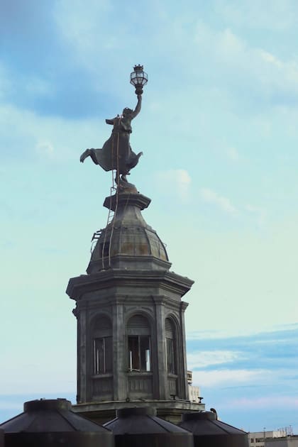 La cúpula del edificio con la figura femenina que representa a la diosa de la sabiduría, Palas Atenea.GCBAUn poco por los espectros y otro por las obras, así como está, en plena etapa de restauración, la verdad es que la construcción mete miedo. Por eso el gobierno porteño, encabezado por Jorge Macri, decidió restaurar el edificio, sin modificar su impronta ni sus grandes detalles, siendo fieles a su singular esencia.